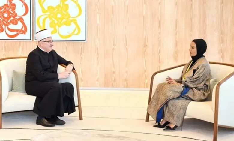 الشّيخة موزا بإطلالة عباءة الكارديغان الجريئة خلال لقائها مفتي كرواتيا (صورة)