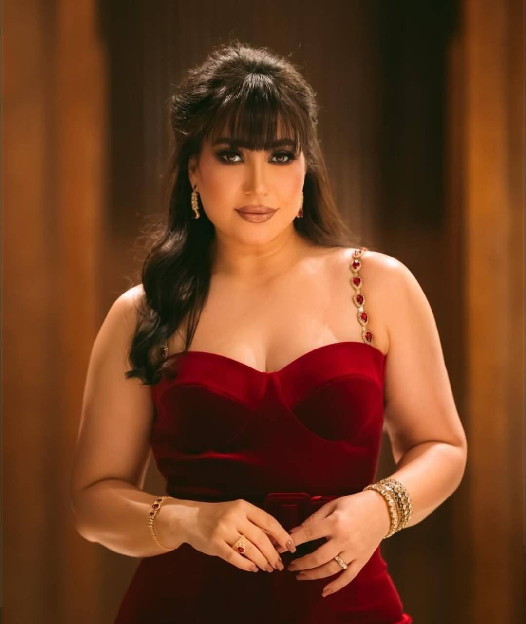 واكملت بوسي اطلالتها الناعمة بحزام عريض يبرز خصرها وتزينت بمجوهرات ذهبية عبارة عن أساور ضخمة وأقراط متدلية وخواتم ناعمة أضافت حركة الى طلتها النهائية التي احدث ضجة كبيرة بين متابعيها وانقسمت التعليقات بين من تغزل بإطلالتها ومن انتقد اختيارها على اعتبار أنه لا يناسب شكل جسمها.