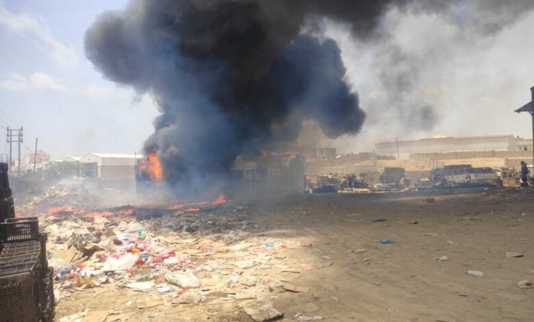 خسائر كبيرة .. حريق يلتهم السوق المركزي للخضار في المكلا