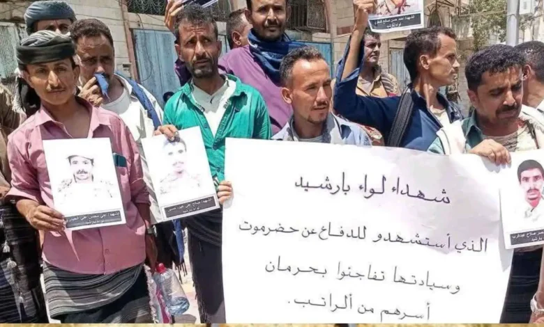وطالب المتظاهرون العسكريون الحكومة اليمنية بإنصافهم والعدول عن قرار إقصائهم “القسري والمجحف”، والعمل على إعادتهم إلى أعمالهم في لواء “بارشيد” العسكري بمحافظة حضرموت، مع صرف مرتباتهم المتوقفة.