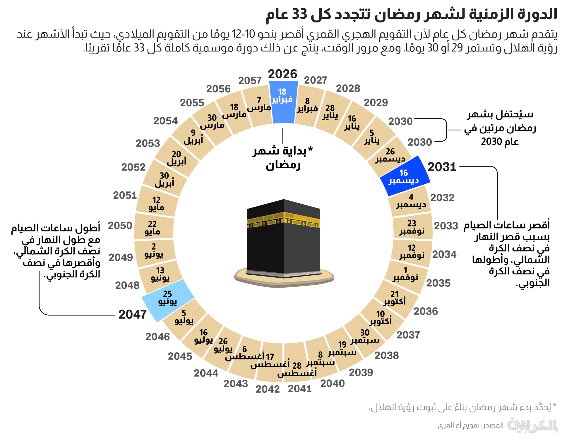 يحل مرتين في 2030.. كيف تبدو دورة رمضان على مدار 33 سنة مقبلة؟