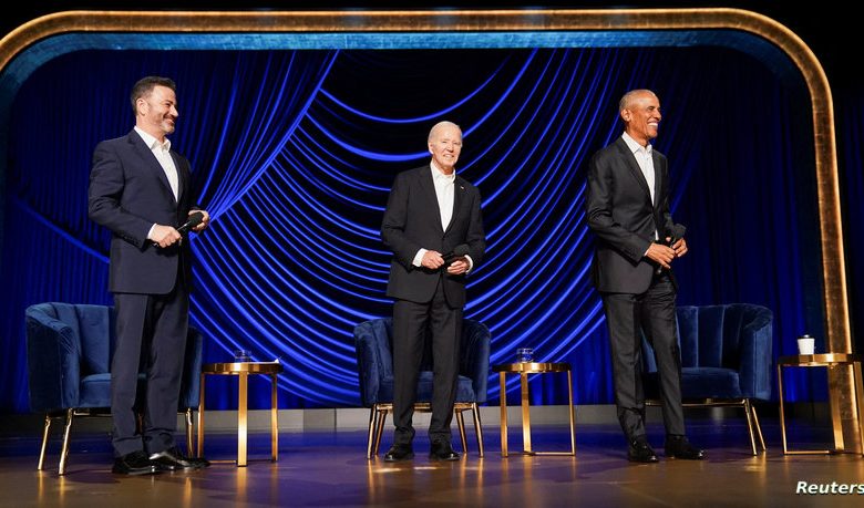 وشارك في ذلك الحفل، الرئيس الأميركي الأسبق باراك أوباما، ونخبة من نجوم هوليوود مثل جورج كلوني وجوليا روبرتس والكوميدي جيمي كيميل.