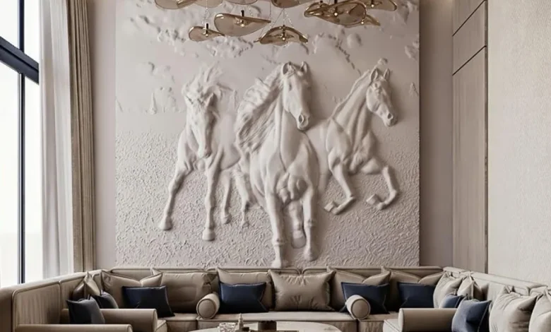 وعن طبيعة تقنيات الإضاءة المستخدمة في إبراز الطابع العربي المعاصر في التصميم، تقول: “أختار مصادر إضاءة معاصرة بروح شرقية واضحة، تحمل نقوشاً وزخارف ناعمة بحيث تعكس النقوش ظلالاً على الجدران والفرش، وتخلق حركة ضوئية ناعمة تُضيف عمقاً ودفئاً للمكان، فهذه الطريقة تمنح الجلسة شخصية خاصة في المساء، حيث تتحول الإضاءة إلى عنصر زخرفي حيّ يتفاعل مع بقية التفاصيل”. وتزيد: “أحرص أن تكون هذه النقوش مبسطةً ومعاصرةً، كي لا تبدو الإضاءة تقليدية، بل تحمل طابعاً شرقياً بتفسير معاصر ينسجم مع الأثاث المعاصر والألوان الجريئة التي أفضّلها. بالنسبة لي، هذه التفاصيل الصغيرة هي التي تمنح التصميم روحه وفرادته، إضافة إلى إضاءة دافئة خافتة في الأسقف أو خلف الجدران لإبراز التفاصيل”.