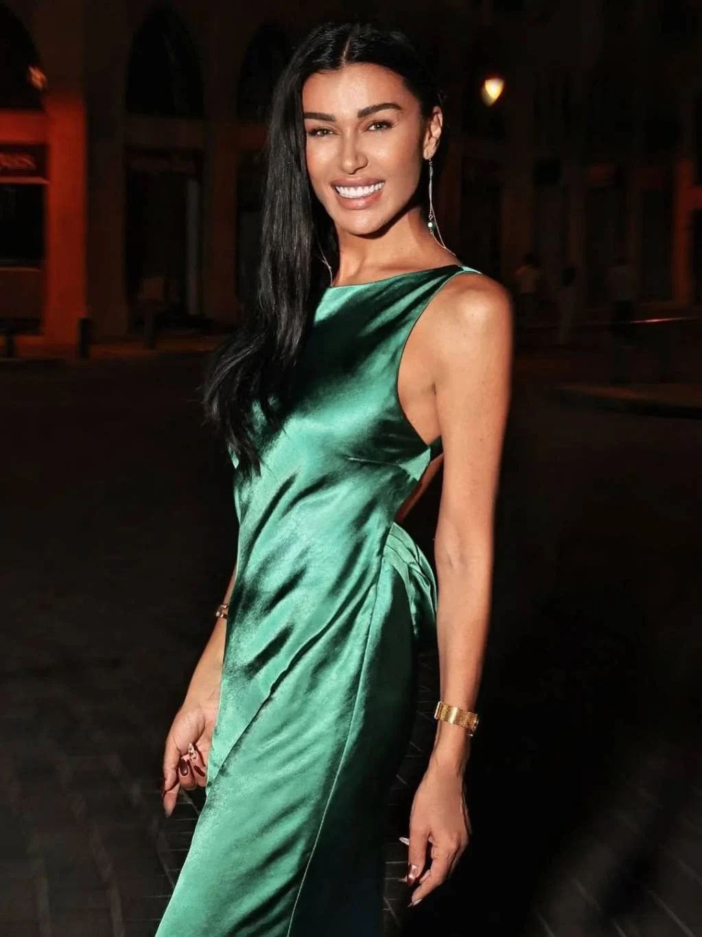 نادين الراسي تتألق بصيحة الساتان بفستان جريء