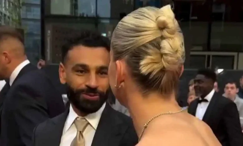 لفت الدولي المصري محمد صلاح، نجم ليفربول الإنجليزي، الأنظار إليه بلقطة عفوية مع أليسيا روسو، نجمة فريق آرسنال ومنتخب إنجلترا، خلال حفل جوائز اللاعبين المحترفين في إنجلترا (PFA)، يوم الثلاثاء.