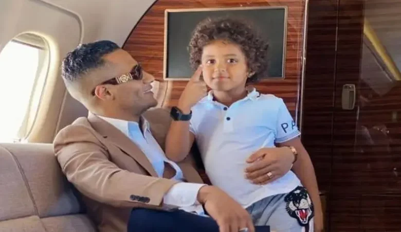 محمد رمضان مع أسرته ويظهر نجله بالصورة