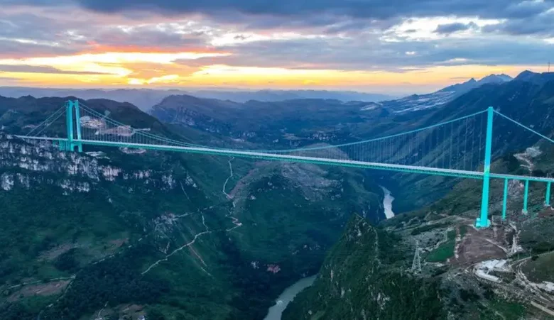 Rising 625 m above the Beipan River and stretching 2,890 m with a 1,420 m main span, it has cut the crossing time between the banks from two hours to about two minutes.… pic.twitter.com/NUlDF33FiK