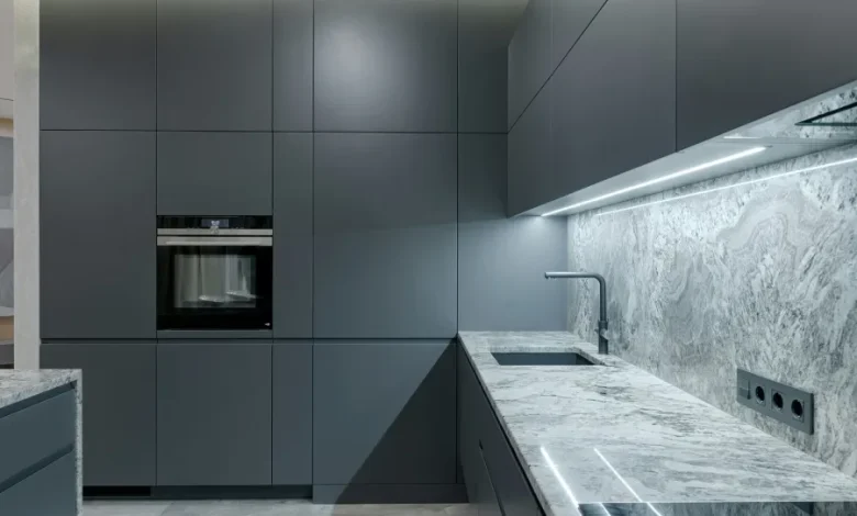 جانب من مطبخ مودرن مع جاذبية الرخام في التصميم