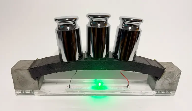ولإثبات الفكرة، بنى الفريق قوساً صغيراً من خرسانة ec³، قادراً على حمل وزنه وتشغيل مصباح LED بجهد 9 فولت. وعندما زاد الحمل على القوس، بدأ الضوء في الوميض، ما يشير إلى إمكانية استخدام هذه الخرسانة كمستشعر ذاتي لمراقبة الإجهادات الهيكلية في المباني.