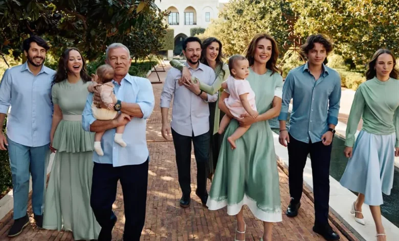 الملكة رانيا والملك عبدالله الثاني محاطان بأبنائهما وحفيدتيهما
