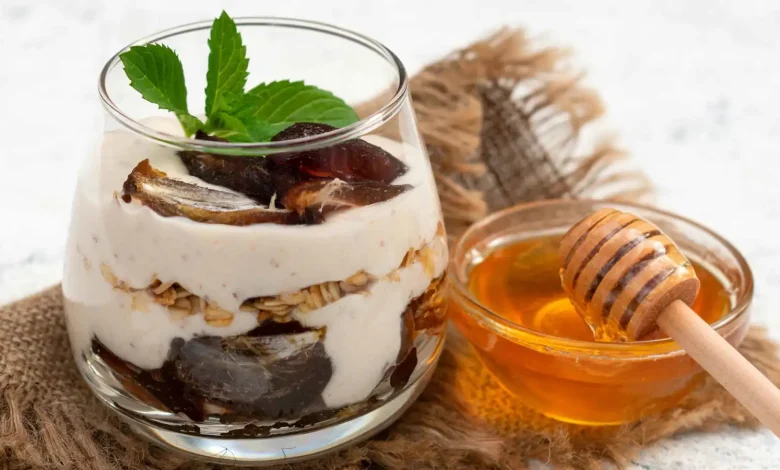 الزبادي مع التمر والغرانولا وجبة سحور صحية