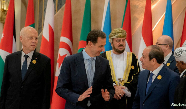 وظهر الأسد في صورة جماعية للقادة العرب الذين حضروا اجتماعات قمة جامعة الدول العربية في جدة، ووقف بجوار الرئيس المصري، عبد الفتاح السيسي، والرئيس التونسي، قيس سعيد.