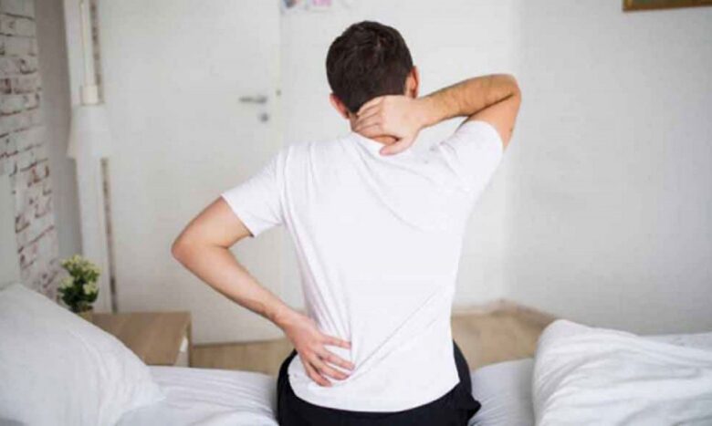 • الشعور بألم وتيبس العنق، أو في كامل العمود الفقري، ويمكن أن يتجه الألم إلى الأطراف السفلية.