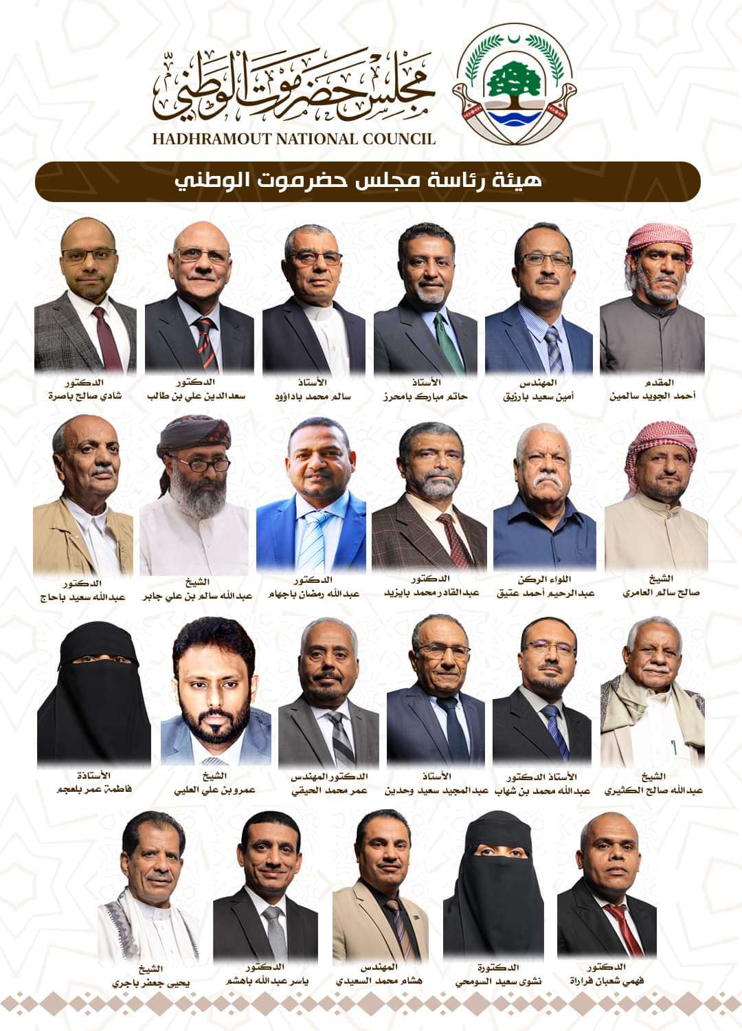 اليمن : صور.. الإعلان رسميًا عن أسماء أعضاء هيئة رئاسة مجلس حضرموت الوطني