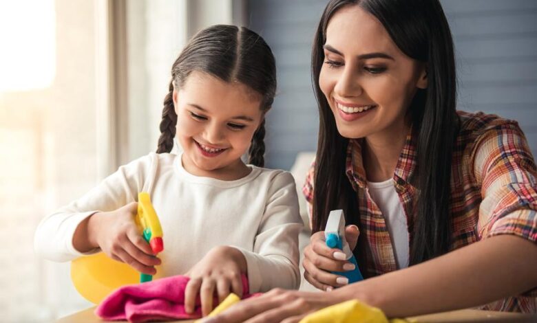 المساعدة في وضع الأطباق في الحوض بعد تناول الوجبة، وترتيب أرفف اللعب وأرفف الكتب الخاصة بهم، وترتيب سريرهم، وإطعام الحيوانات الأليفة.